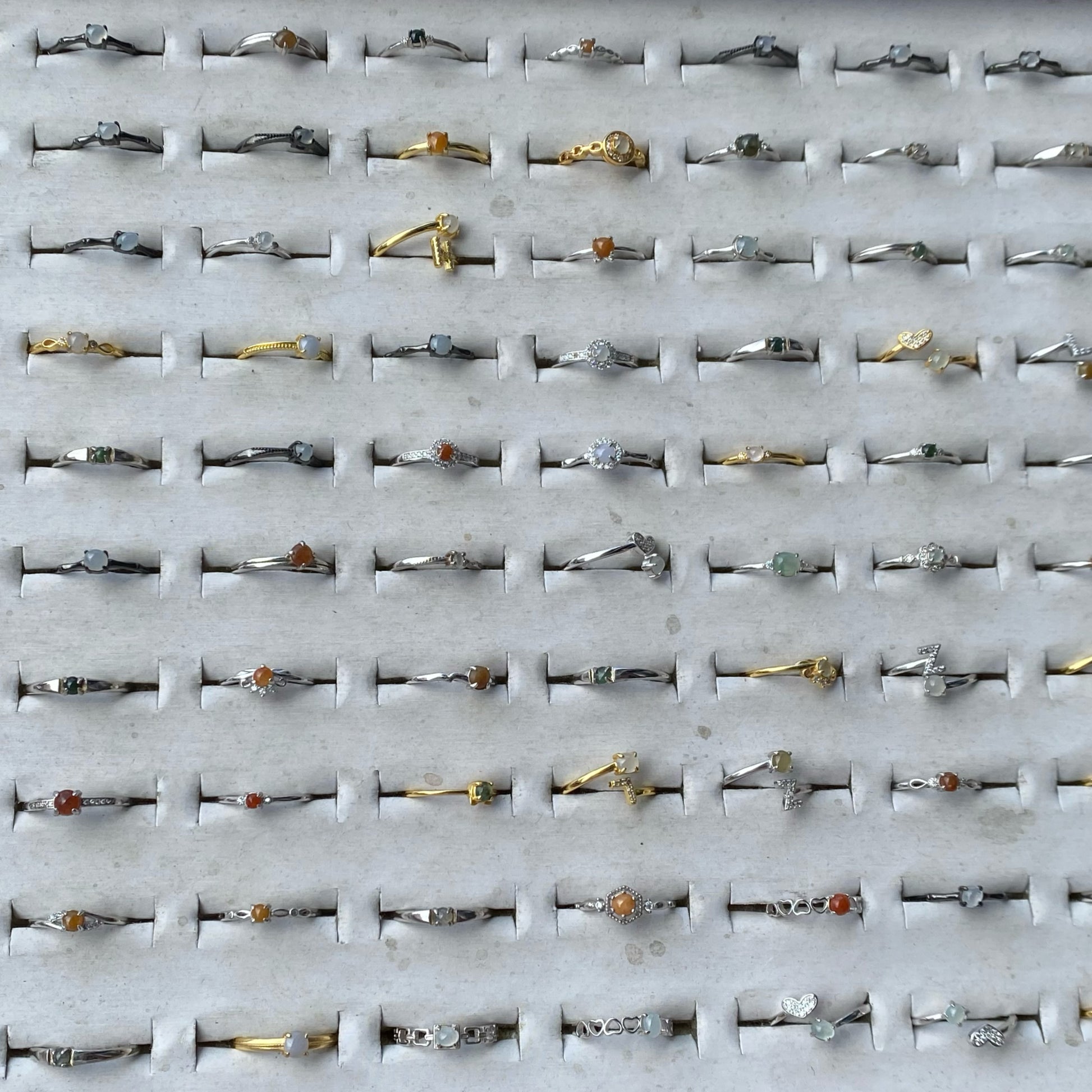 Wholesale price: $3.1USD per ring, minimum order of 10 rings ($3.1× 10 rings). The approximate size of the Burmese jadeite is 0.25cm × 0.25cm.